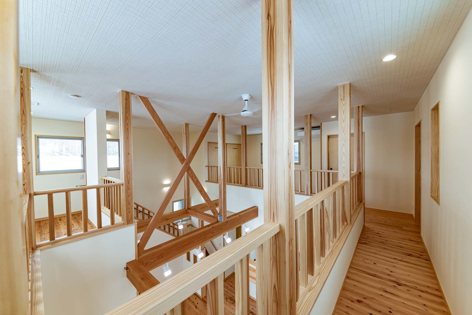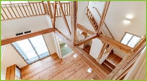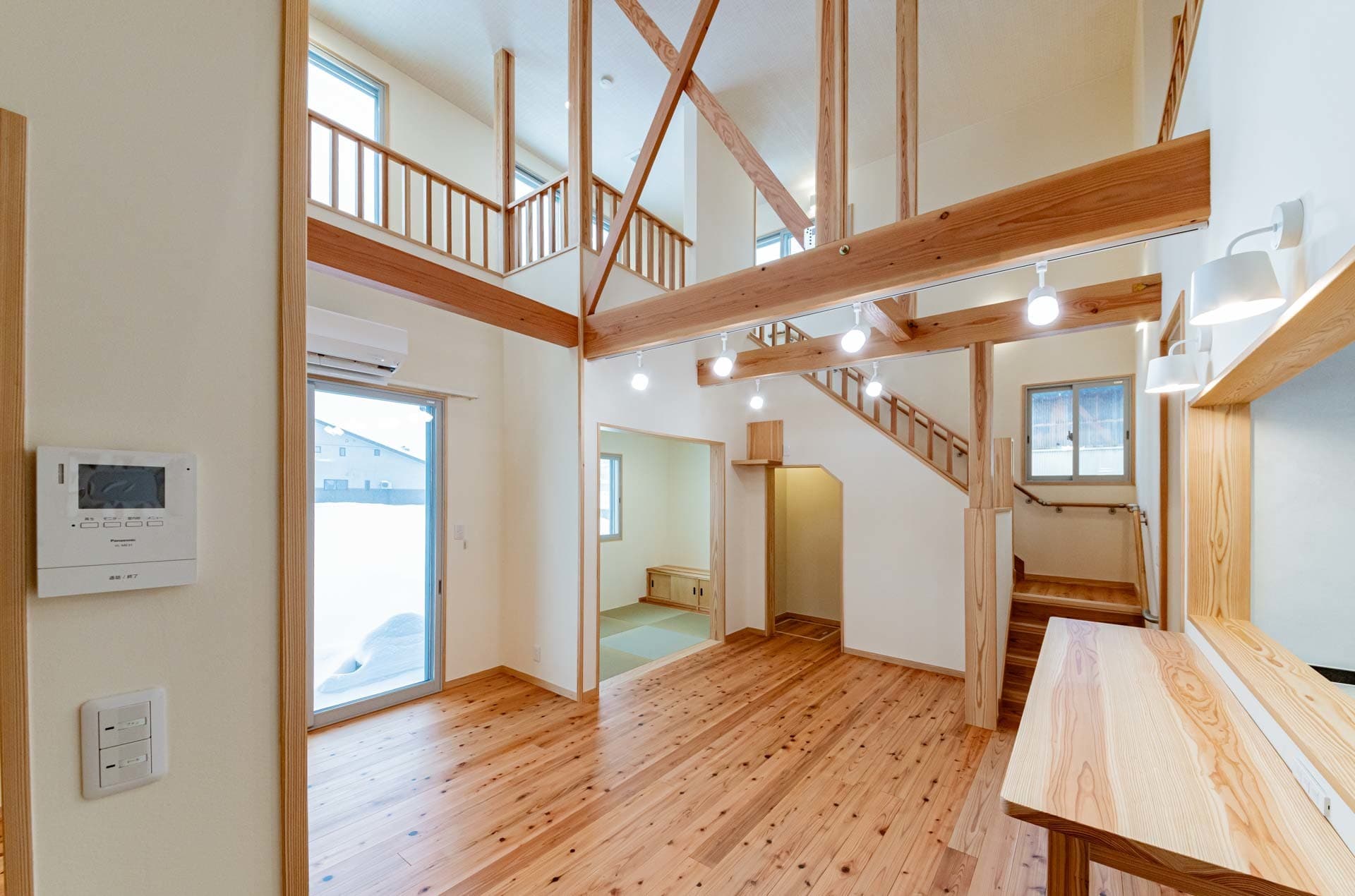 梁と回遊がつくる、吹き抜けのある木の家