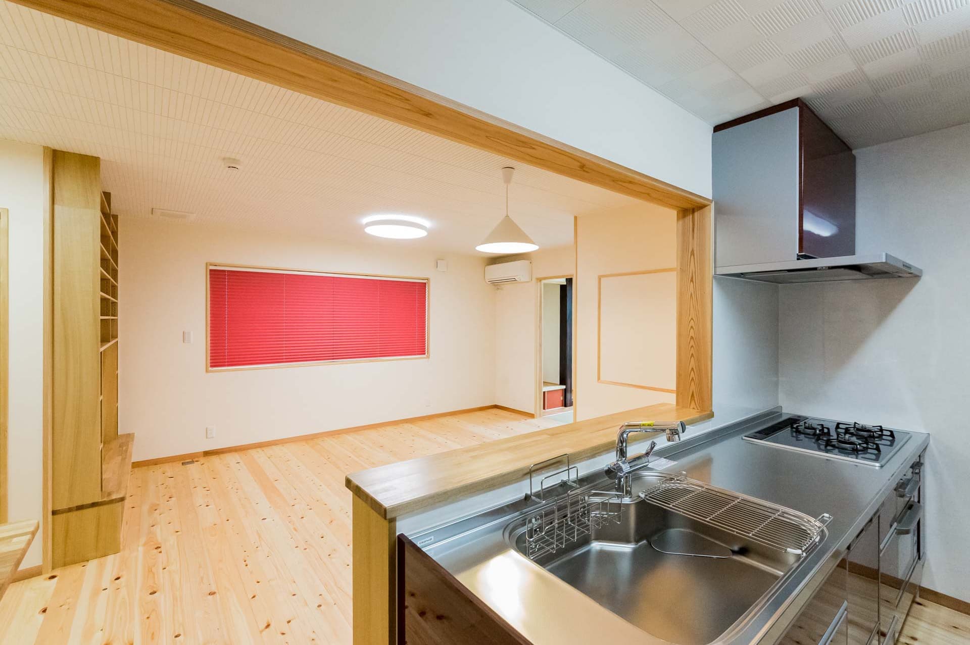 梁と回遊がつくる、吹き抜けのある木の家