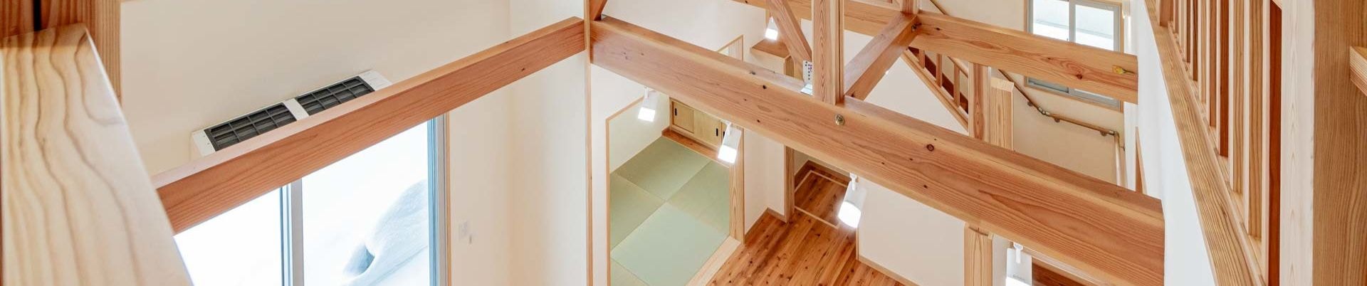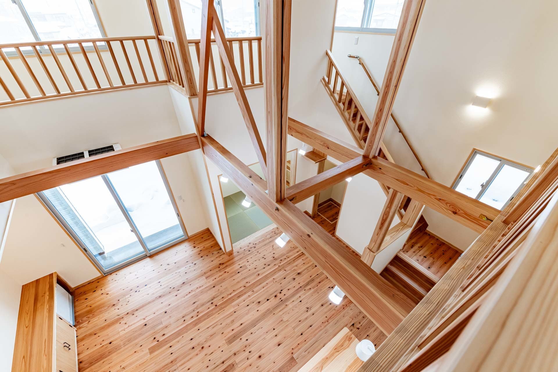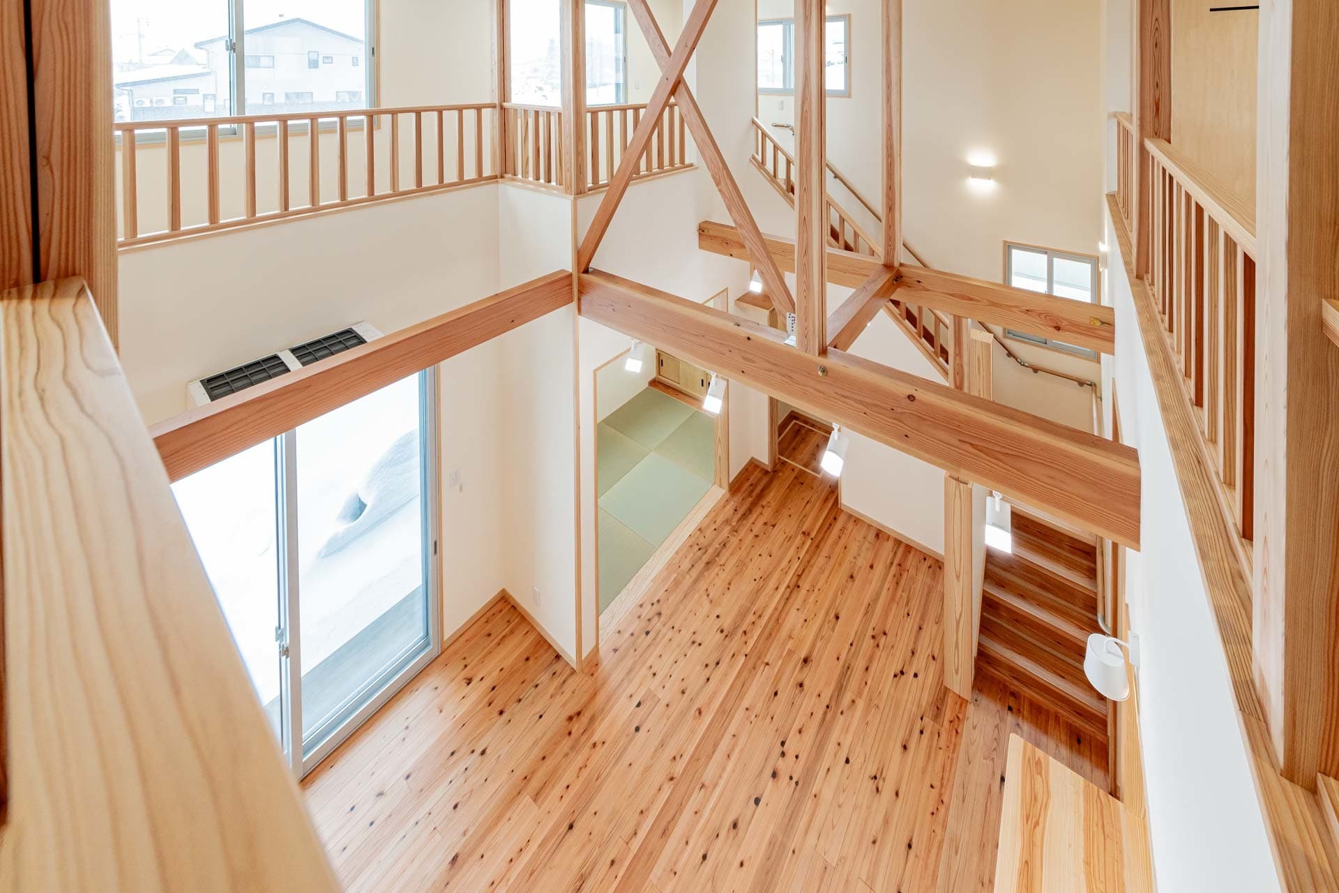 梁と回遊がつくる、吹き抜けのある木の家