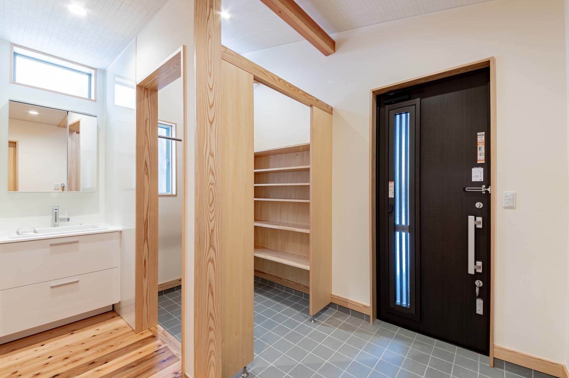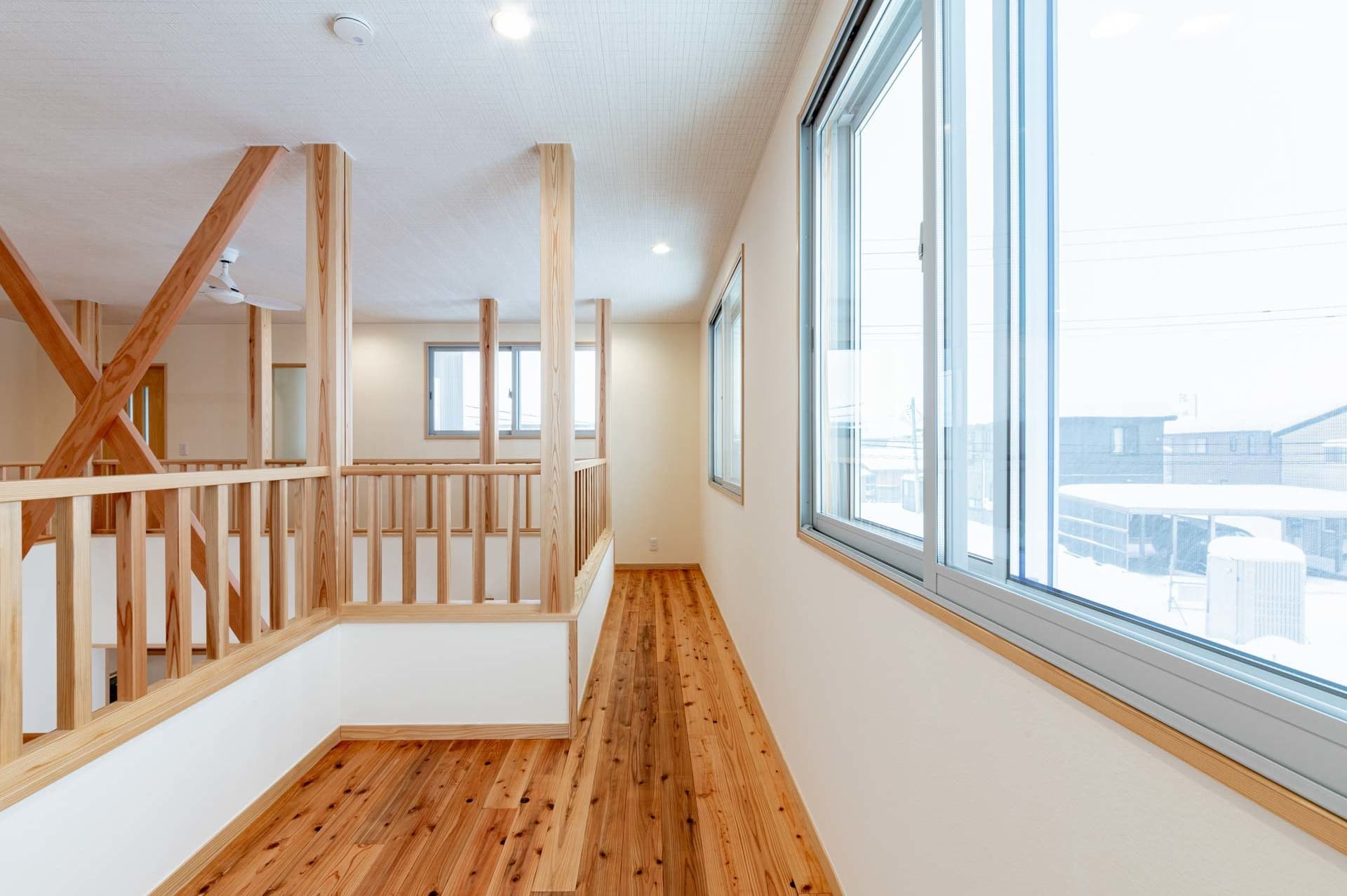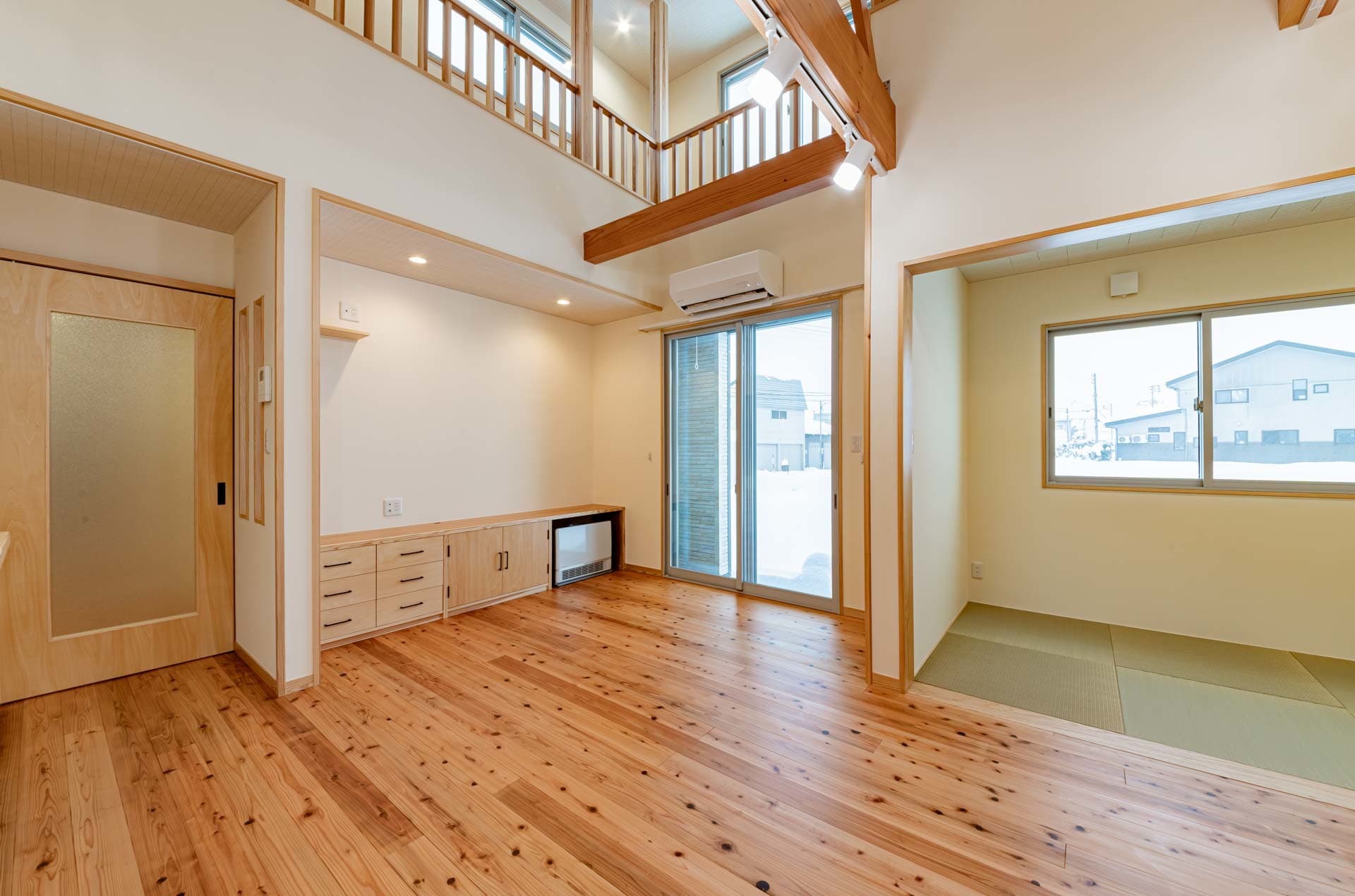 梁と回遊がつくる、吹き抜けのある木の家