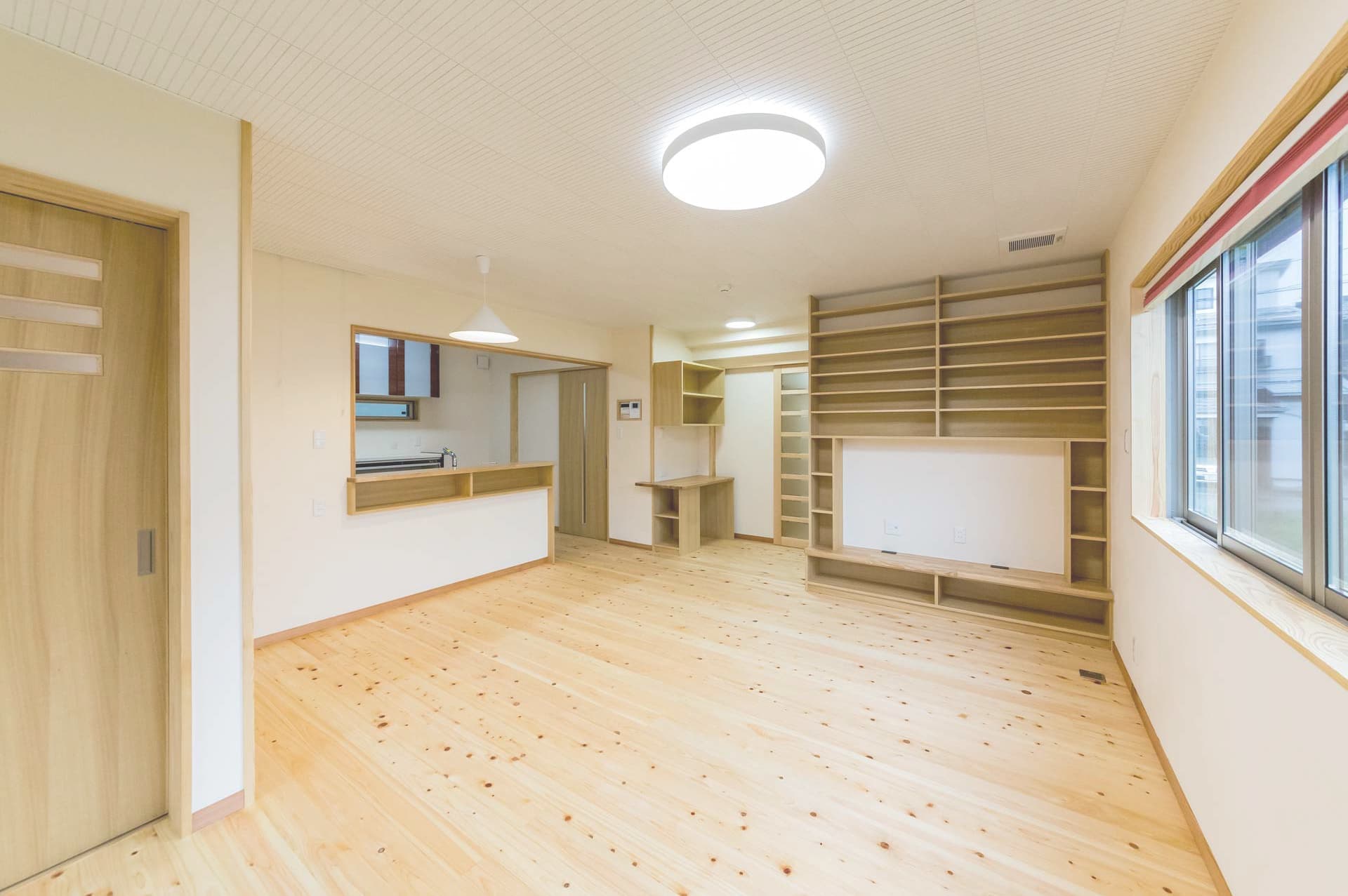 梁と回遊がつくる、吹き抜けのある木の家